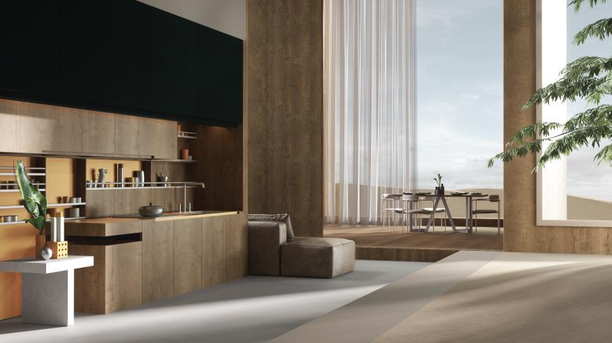 A warm based woodgrain with subtle planking which works particularly well in the moody kitchen spaces. We have 4 colors in the series, which can be very modern or traditional.