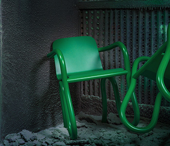 "The tables and chairs are sculptures that evince dining as theatre. They create a space to share and create stories, with a Formica surface that promises to always wipe clean. In designing this furniture, I was seeking the space between Reason and Chaos: the state of PLAY. This is the space where our human animal shows its greatest self." - Matthew Day Jackson