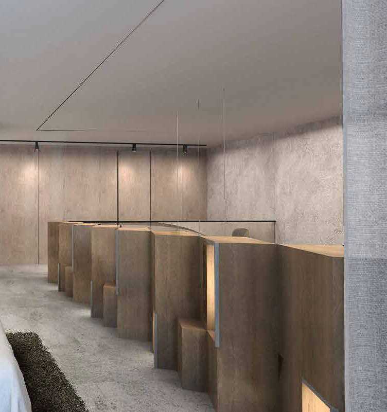 Next we will be presenting some of the items identified in this chapter in a shop house setting. A shop house is an architectural building type that is commonly seen in areas such as urban Southeast Asia. Shop houses are mostly two or three stories high with a shop on the ground floor for mercantile activity and a residence above the shop.Highlight: Playing with the contrast of modern surfaces we have used an unique laminate layer contour technique to create a creative feature wall mimicking the contours of a natural landscape at the dining room. Through laser-cutting and the incremental variation of size between the layers depth is created – turning the otherwise flat laminate into a 3D object.