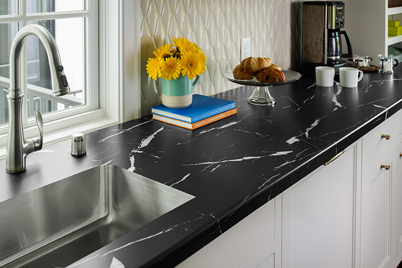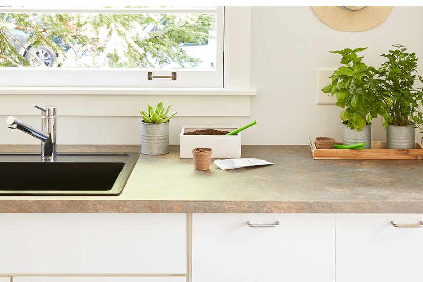 Algunas superficies en tonos claros y cálidos serán tu mejor aliado para que tu cocina luzca más grande. Selecciona tonos visualmente lisos y en tonalidades neutras. Formica® ofrece diseños que muestran suaves fondos blancos con vetas grises y beige neutro como White Pearl Cascade que fusiona listones aperlados que conforma un sutil tono plateado.