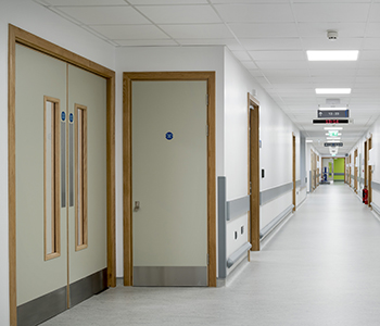 Formica® HPL gebruikt voor deurafwerking, wandbekleding en meubilair in het ziekenhuis
