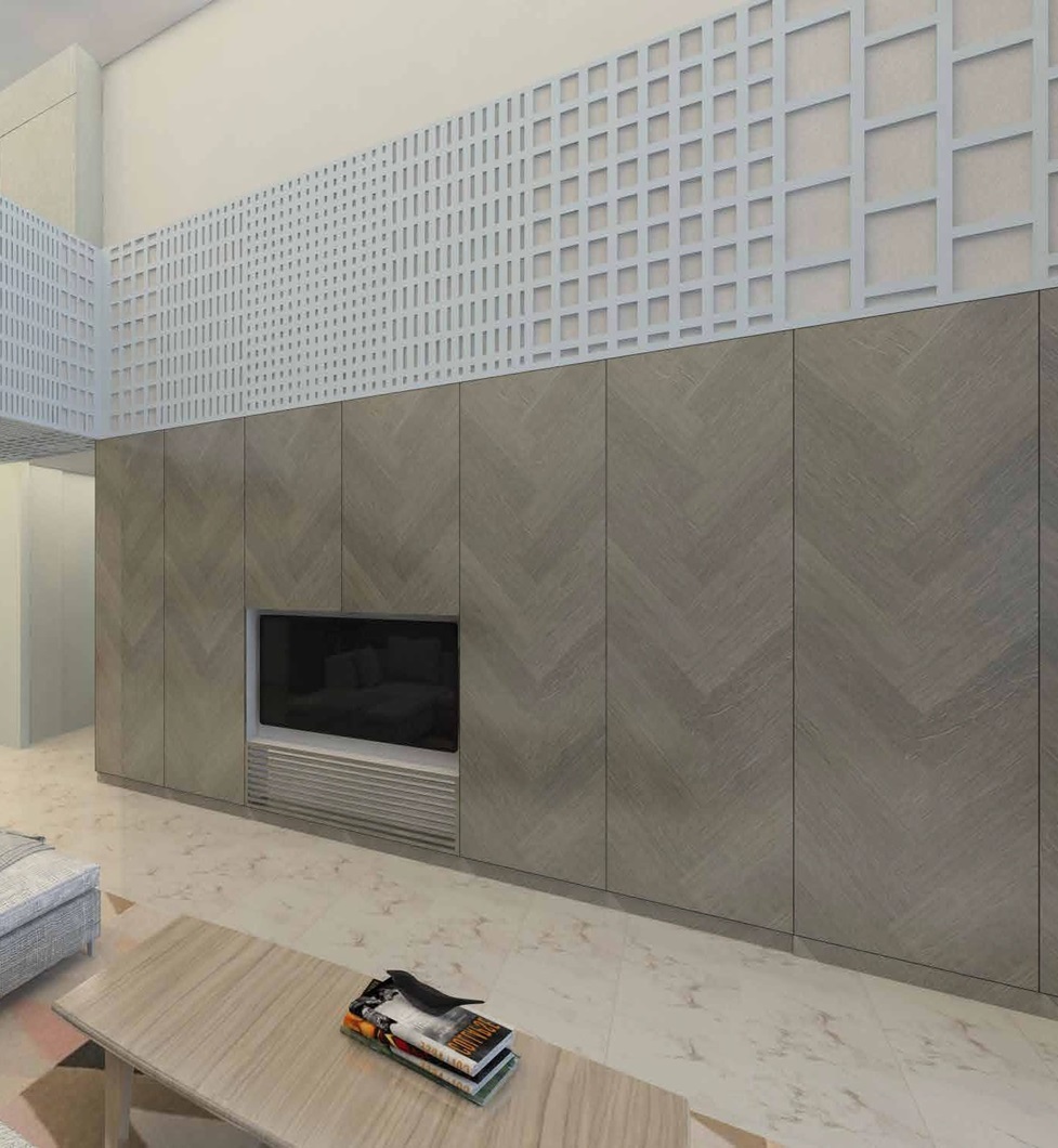 我們已經將美耐板走出僅僅是裝飾性表面材的限制 - 現在可以創造客製化的屏風和天花板設計;將這時尚的閣樓式公寓的樓梯護欄成為設計焦點。