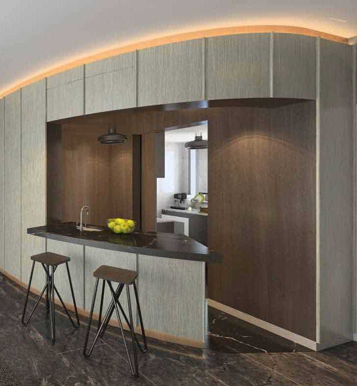 此類奢華風格取自於深、淺灰色木材、藝術感石材和經典淺色男裝紋理的融合,更顯沉穩內斂。 巧妙地使用巧克力色和奶油色作為基底色,採用煙燻色調木材和織物設計,呈現出精緻工藝的奢華質感。 |